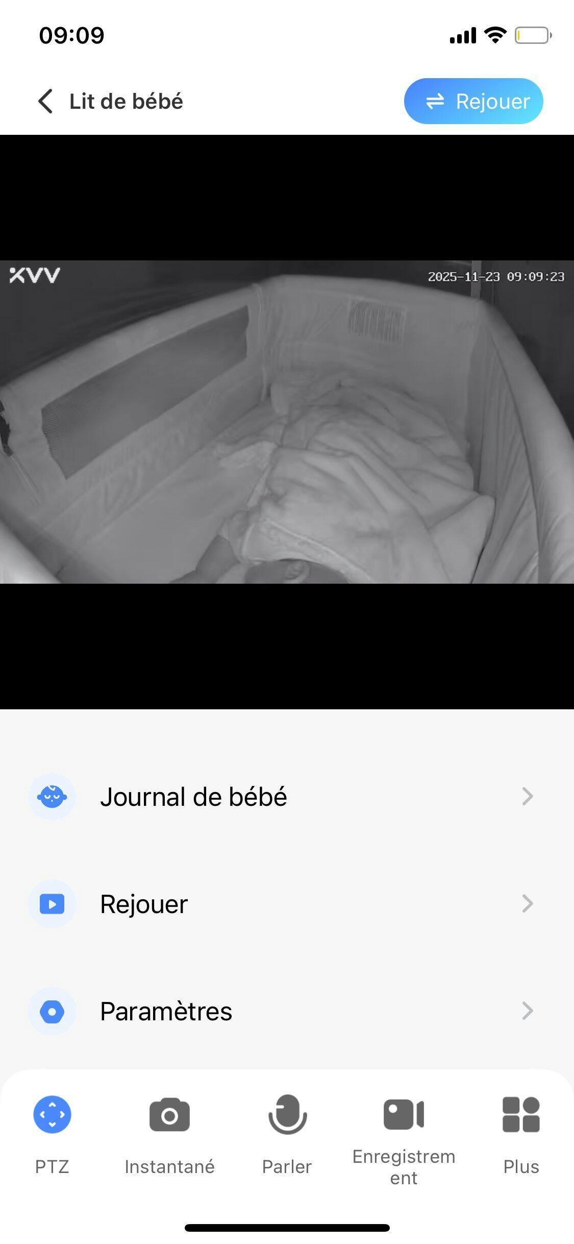 Je me sens plus rassurée depuis que j’ai installé la caméra. Je peux voir bébé car l’image est vraiment de bonne qualité que ce soit le jour où la nuit. Et je peux même parler à bébé.